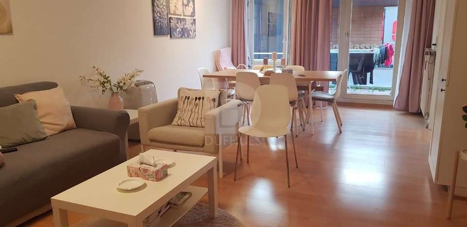 Diese im I. Obergeschoss liegende, möblierte Wohnung ist wie folgt aufgeteilt: Wohnzimmer mit Ausgang zum Balkon, eingerichtete Küche, Diele mit Einbauschrank, Schlafzimmer, Kinder- bzw. Gästezimmer, Bad mit Wanne und Spiegelschrank, Gäste-WC mit Dusche. Zur Wohnung gehört ein Kellerraum und ein PKW-Stellplatz (1055). Im Kaufpreis ist die Einbauküche sowie der Stellplatz in der Tiefgarage inbegriffen.
