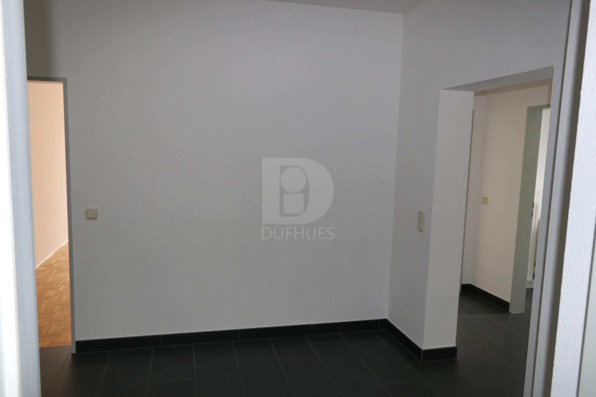 Die Wohnung hat ein neuwertiges, weiß gefliestes Duschbad mit anthrazitfarbenen 60 x 30 Keramikfliesen, einen Würfelparkettfußboden im Wohnzimmer und auch anthrazitfarbene 60 x 30 cm Keramikfliesen in Küche und Diele. Alle Schlafräume sind mit einem Laminatfußboden belegt. Kunststofffenster mit Isolierverglasung und teilweise Kunststoffrollläden, Haussprechanlage, Hausmeisterservice inkl. Treppenhausreinigung, Wasch- und Trockenraum.
