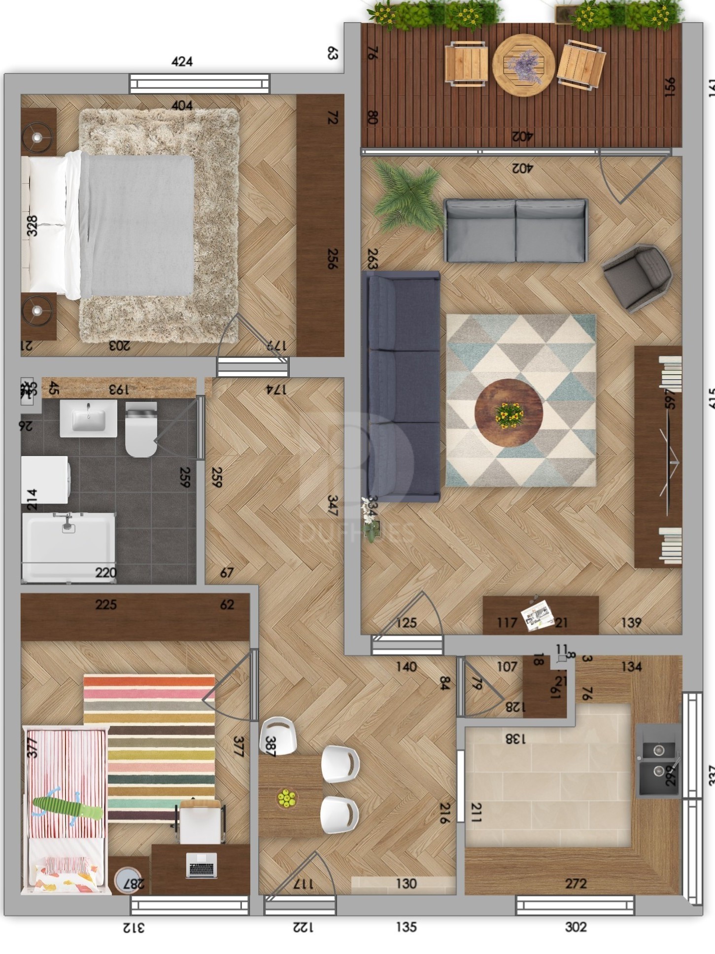 - Bodenbelag: Laminat